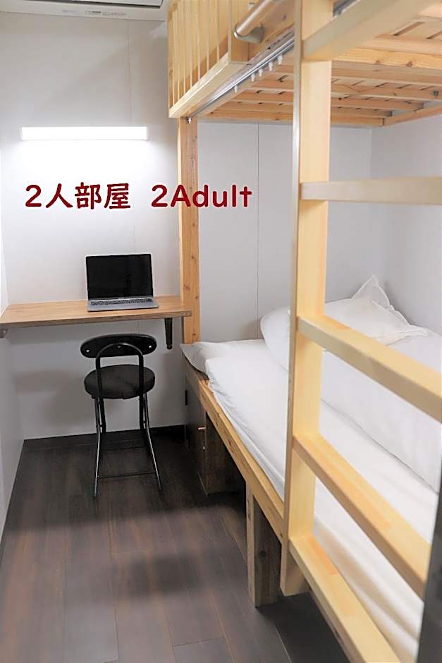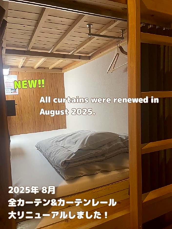 This bed is set in a mixed dormitory room with a safe, a mirror and a clothes hanger.